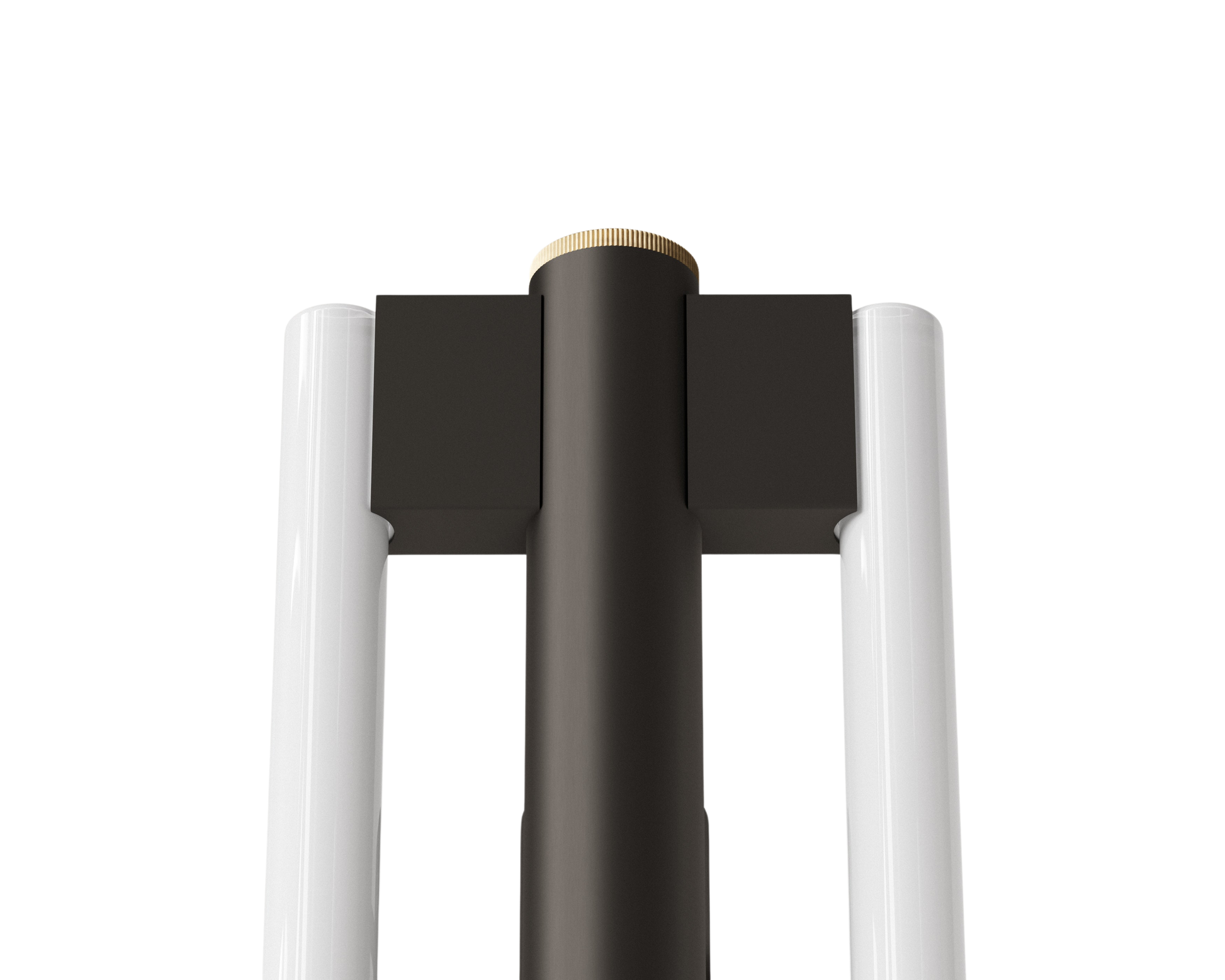 In balance between construction and form, the Eiffel Wall Lamp is made with simplicity in mind. The light is softly diffused thanks to the blown opal glass and the construction rods are made from gun blued steel.